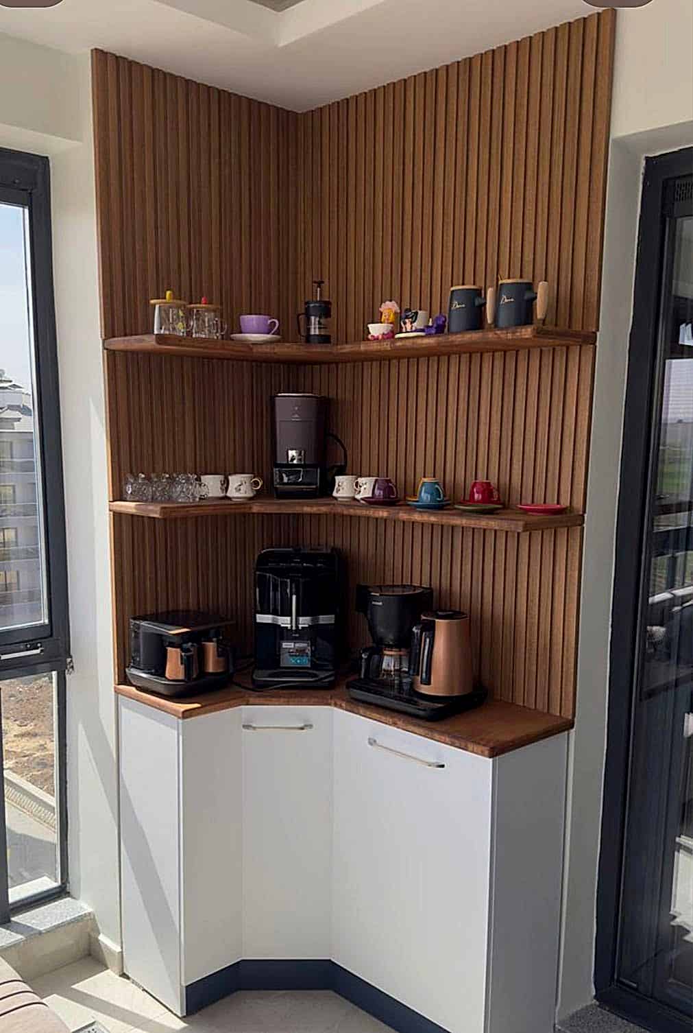 Kahve köşeleri, küçük alanları verimli kullanmanızı sağlar ve yaşam alanınıza sıcak bir atmosfer katar. Modern, klasik veya minimal tasarımlarda üretilen modellerimiz, kahve makineleri, fincanlar ve aksesuarlar için özel alanlar sunar. Farklı ölçü ve renk seçenekleri ile evinizin dekorasyonuna uyum sağlayacak kahve köşesini kolayca seçebilirsiniz. Hem kullanım kolaylığı hem de şıklığı bir arada sunan kahve köşeleri ile evinizde her zaman keyifli kahve anları yaşayabilirsiniz.